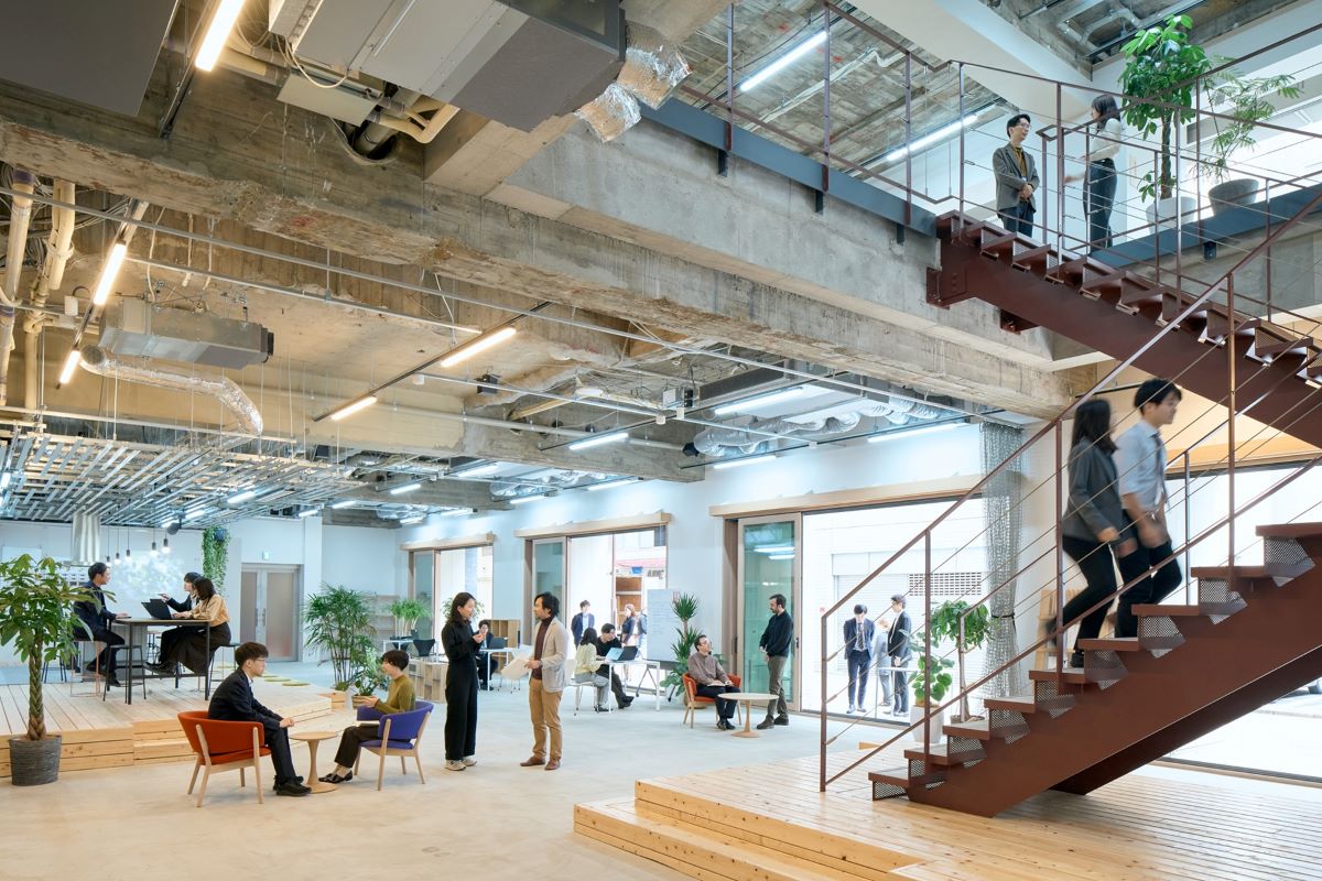 都心部に立地する築60年のテナントオフィスの再価値創造プロジェクト。敷地は神田地区に位置して商社の地域拠点ビルとして当時の最先端技術を導入、その後3回目の改修にあたり構造体やオリジナル要素の価値を継承しながら、新たな要素を加えることで、「環境性能」と「快適性」を時代の価値に適合させた。