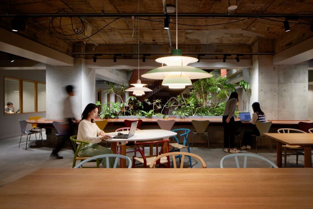 設備・環境的には、2018年策定の長期改修方針に基づき、エネルギー効率と環境負荷低減の両立を図った。設備面では、高効率空調や全館LED照明、外気冷房・CO2制御・変風量制御など多様な省エネ技術の導入により、ZEB Oriented(BEI=0.55)認証取得を実現した点が際立つ。また、各部・各設備について緻密な維持保全計画が整備されており、安定した機能の継続が見込まれる。運用面では、センサーによる温湿度・CO2濃度モニタリングと自然換気の活用により、オフィス内の快適性・電力効率を継続的に改善していることも評価に値する。低層部テナントについてはWELL認証ゴールドランクを取得している。