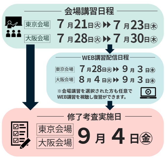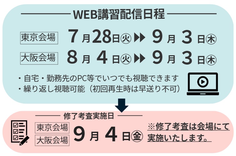 なお、修了考査は会場講習・WEB講習ともに会場にて実施いたします。
